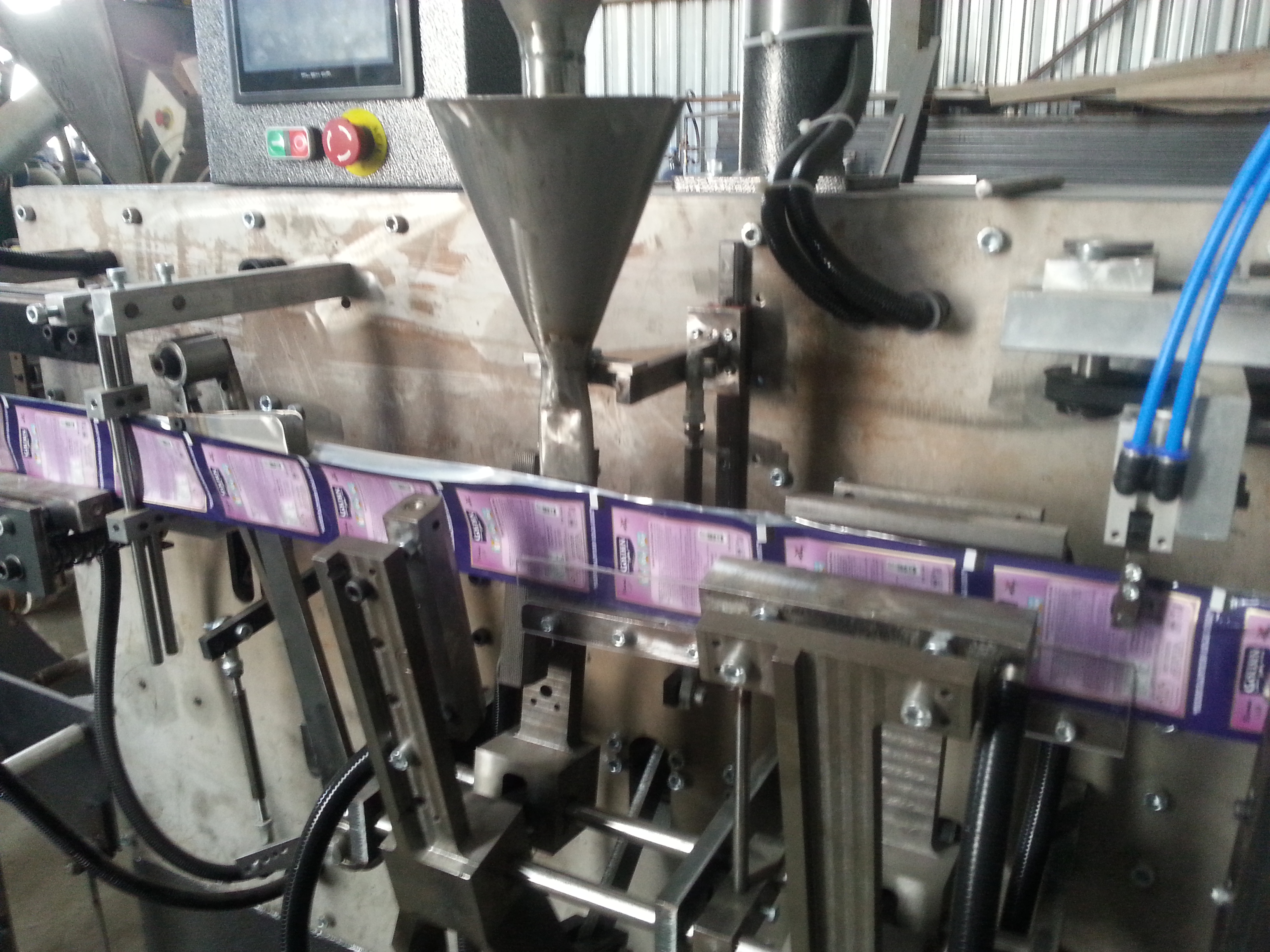 PLC kontrol sistemi, dokunmatik ekran, sıçaklık kontrolü, otomatik pnömatik bileşenler, otomatik adet kontrolü, paket gramaj ayarlama, bobin hız ayarlama, dc motorları ve servo motorların hızlarının ayarlanması dokunmatik ekranda yapılmaktadır.